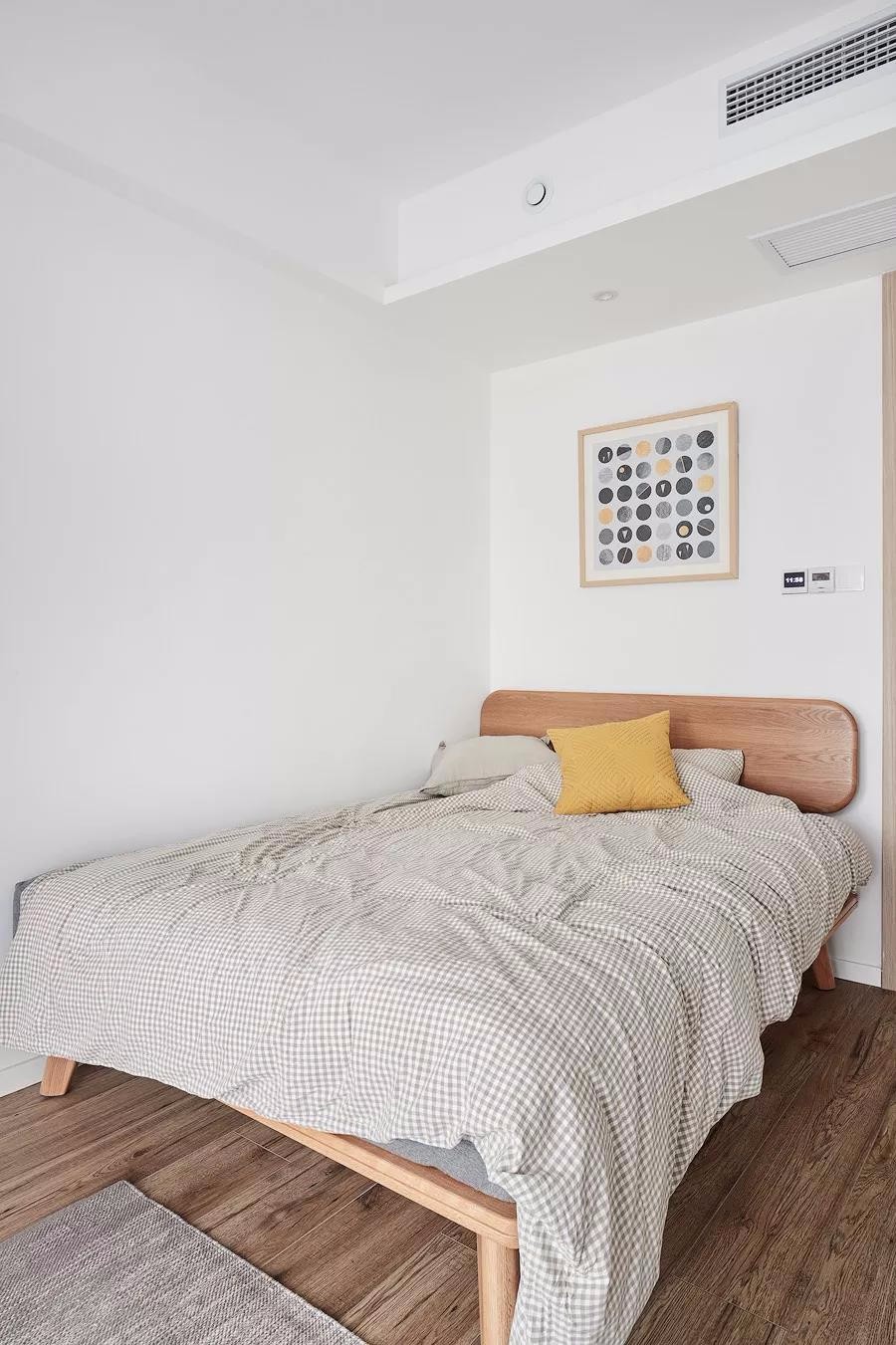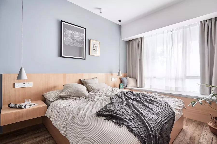 有2個臥室,還有1個小書房,布局真的很不錯。整個家大量搭配了原木家具,清新又自然,文藝又有格調,好喜歡這種休閑又放松的家居氛圍。很多人問我客廳刷什么顏色的乳膠漆好,我覺得淺灰色不錯,客廳采光特別的給力,好喜歡休閑飄窗的設計,視野十分開闊,看書休憩都特別的舒服。淺灰色調不會顯得過于沉穩(wěn),在布藝中加些暖色,會更顯休閑溫馨感。軟裝搭配細節(jié)放大看一看,哈哈,質感真的不錯,黃色抱枕真的超愛了!搭配個小邊幾,擺上綠植,清新又養(yǎng)眼,裝修的時候墻面別忘了預留插頭,平時充電會更方便些.主臥的采光也特別棒,整個空間氛圍清新又自然。很喜歡床頭木質護墻板的設計,和臥床、床頭柜融為一體,十分的協(xié)調。廚房雖然面積不大,但也打造出U型布局,動線合理,操作方便。很喜歡這種時尚中融入清新色調的搭配了。冰箱也有了歸屬感!