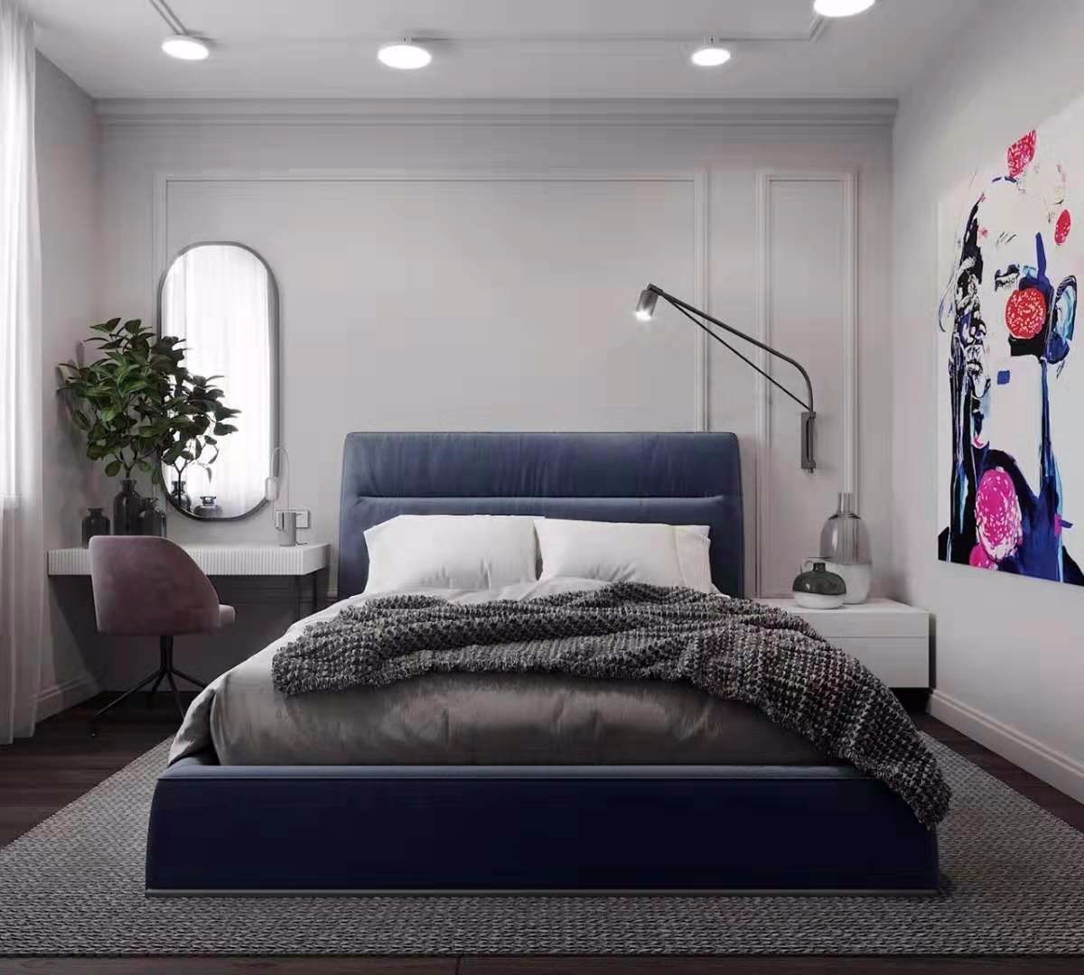 床頭燈的設計采用壁燈,不占據(jù)任何位置