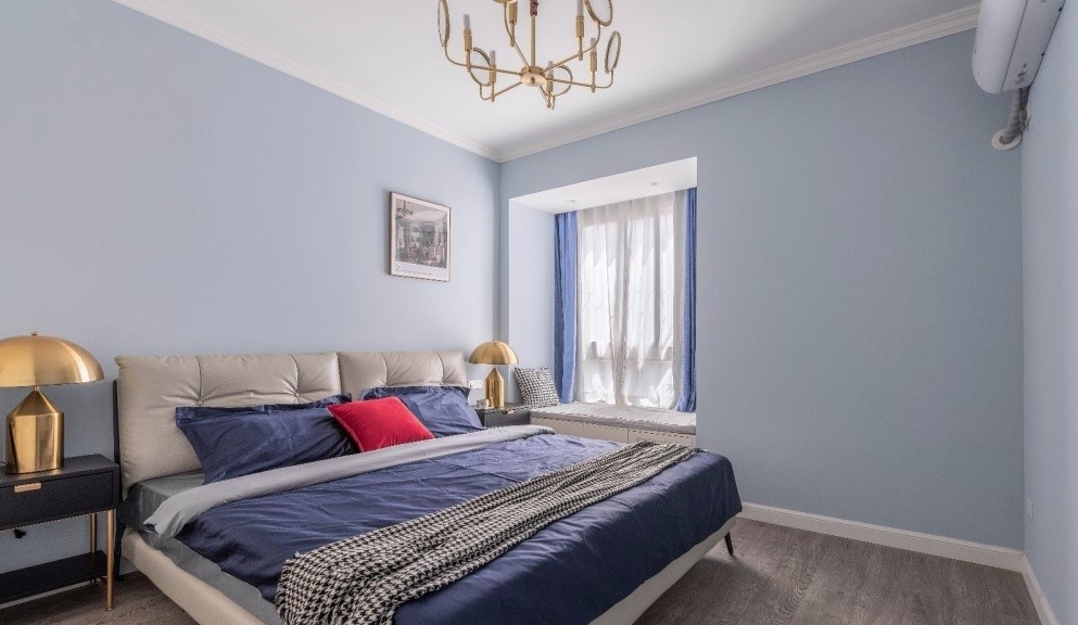 為了讓臥室不那么呆板,選擇了一副古典裝飾畫,用不對稱的方式打破空間的平衡感,從而使空間更有戲劇性。。